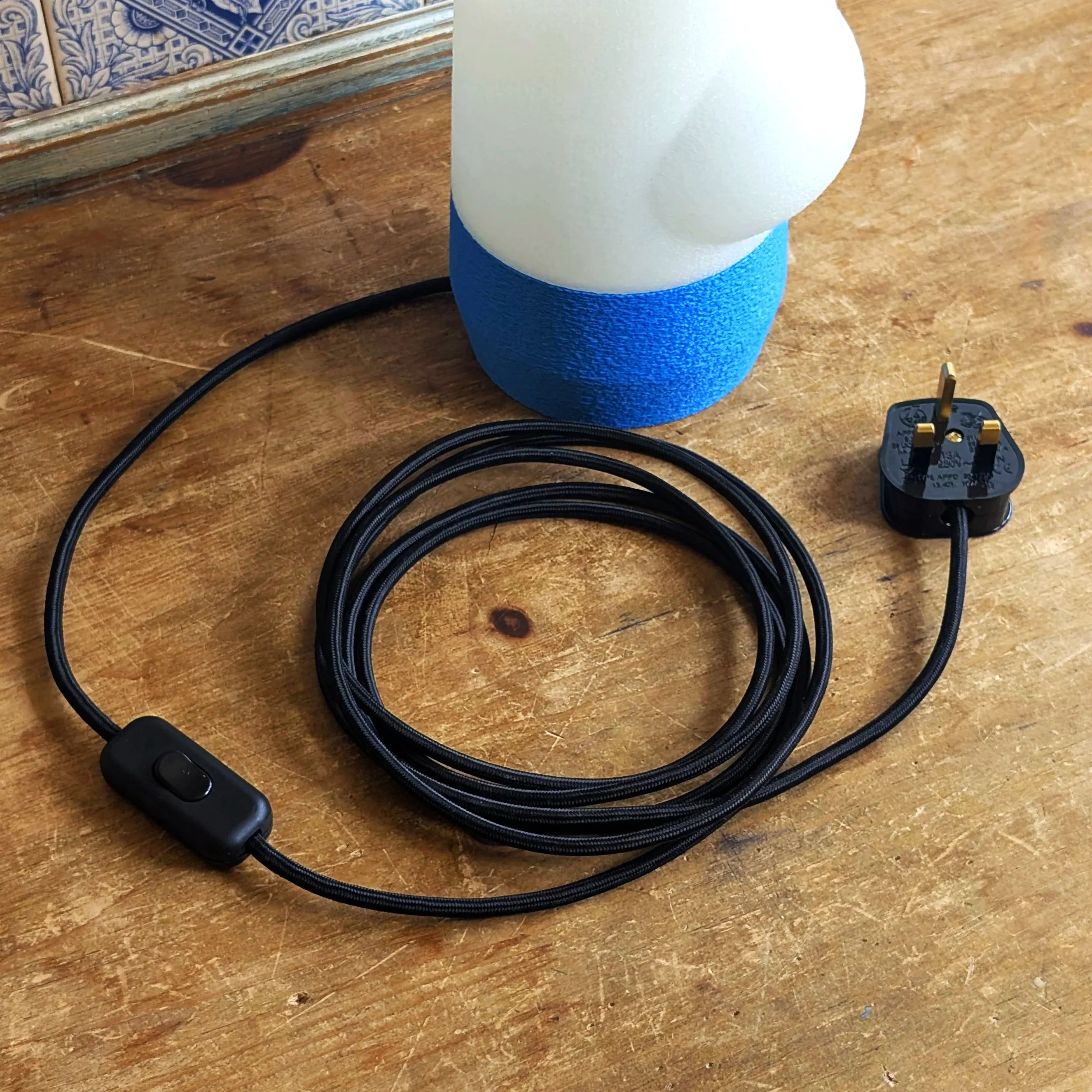 Assembled with a 3m cord, UK 3A fused plug and a toggle switch roughly 40cm from the lamp.